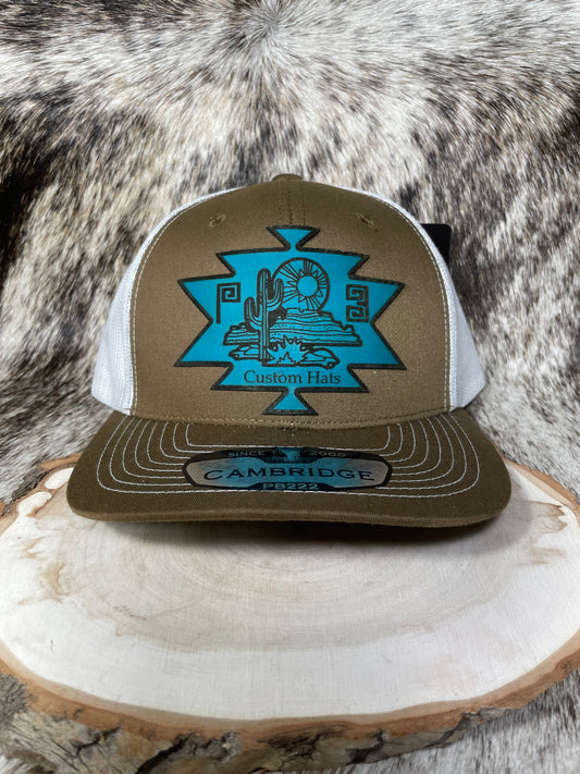 P3 Custom Hats Aztec Desert Turquoise Leather Patch Hat